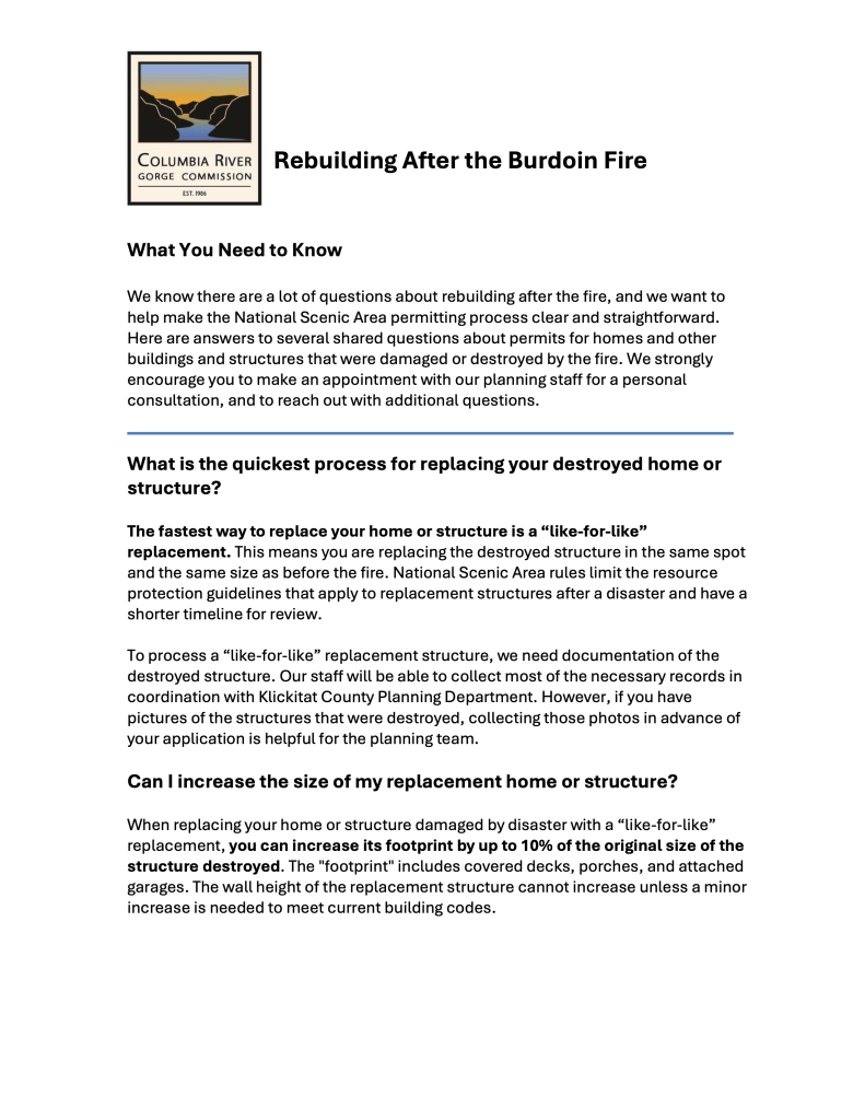 One question facing those who lost homes in the National Scenic Area on both sides of the Columbia is “What hoops do I have to jump through to rebuild?”