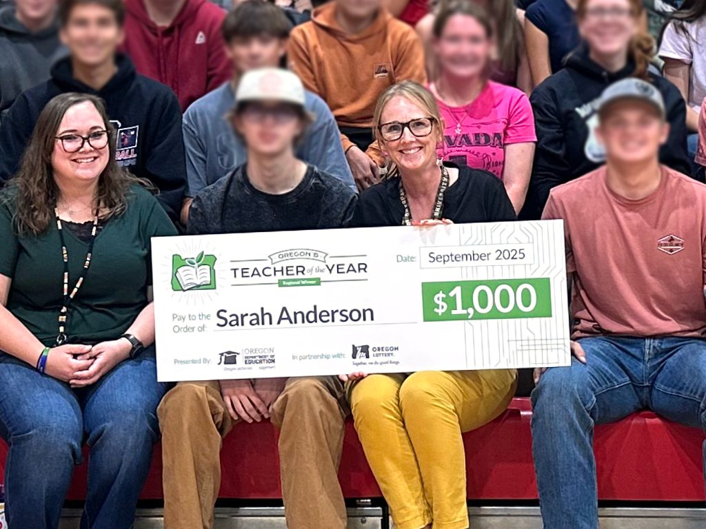 “At Dufur School, she is recognized for her dedication to student success, her creative lesson plans, and her ability to make historical and literary concepts relatable and meaningful,” Principal Kristin Whitley added. “Sarah prioritizes culturally responsive teaching, ensuring that all students feel included and represented in her lessons. She also excels in encouraging students to take ownership of their learning, whether through Socratic seminars, thematic research projects, or interdisciplinary activities.”