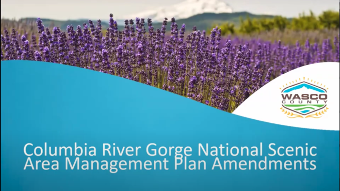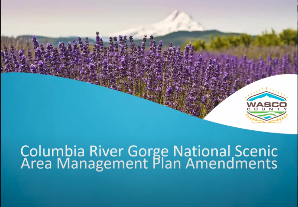 Wasco County Planning Director Kelly Howsley-Glover delivered the update at a 5 pm meeting Tuesday night, September 30 in the Steve Kramer meeting room of the new Wasco County building. She was joined by Krystyna Wolniakowski, the Executive Director of the Columbia River Gorge Commission. The update was posted online October 1. Click the link below to go to the video online.