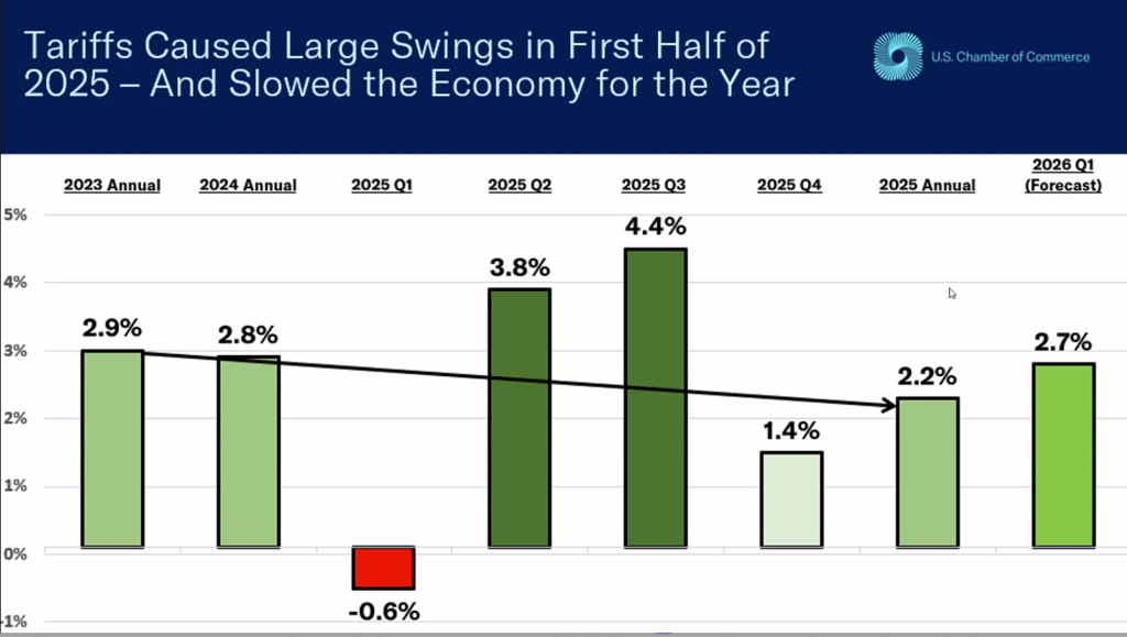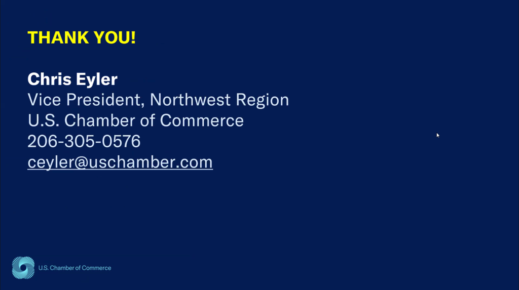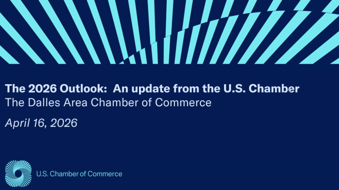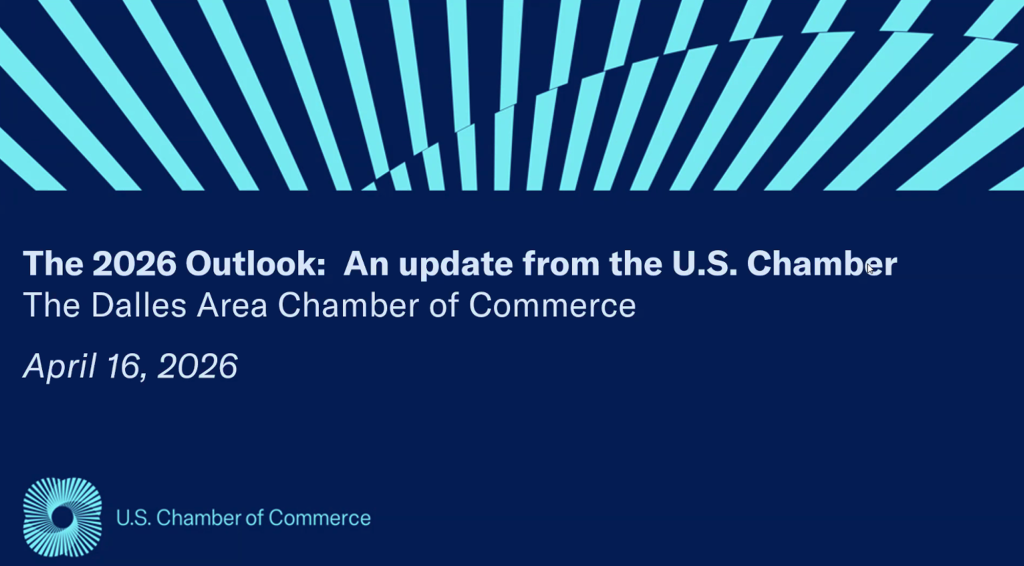 On April 16, U.S. Chamber of Commerce Northwest Regional Representative and national lobbyist Chris Eyler made a Zoom presentation on issues currently facing businesses in the country to The Dalles Area Chamber of Commerce Community Affairs meeting. It had so much current information on taxes, tariffs and the U.S. economy, that we recorded the audio and got screenshots of his slide deck. Below each deck is an audio link for his commentary.